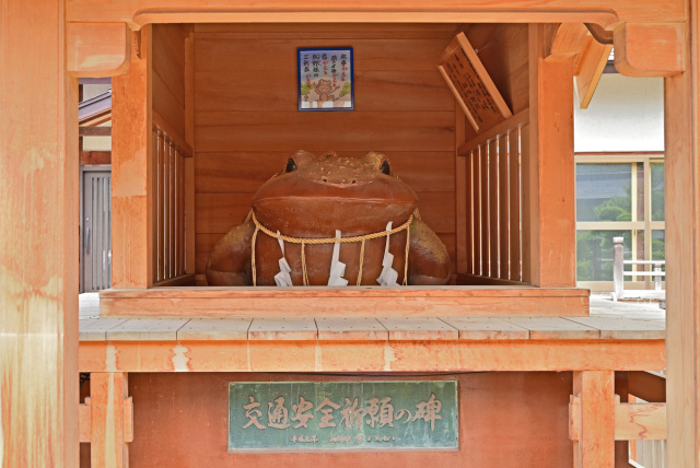 また、日本最大級といわれる信楽焼の「七福蛙」像もあり、「無事かえる」「願いがかえる」として開運や交通安全を願う参拝者に親しまれています。