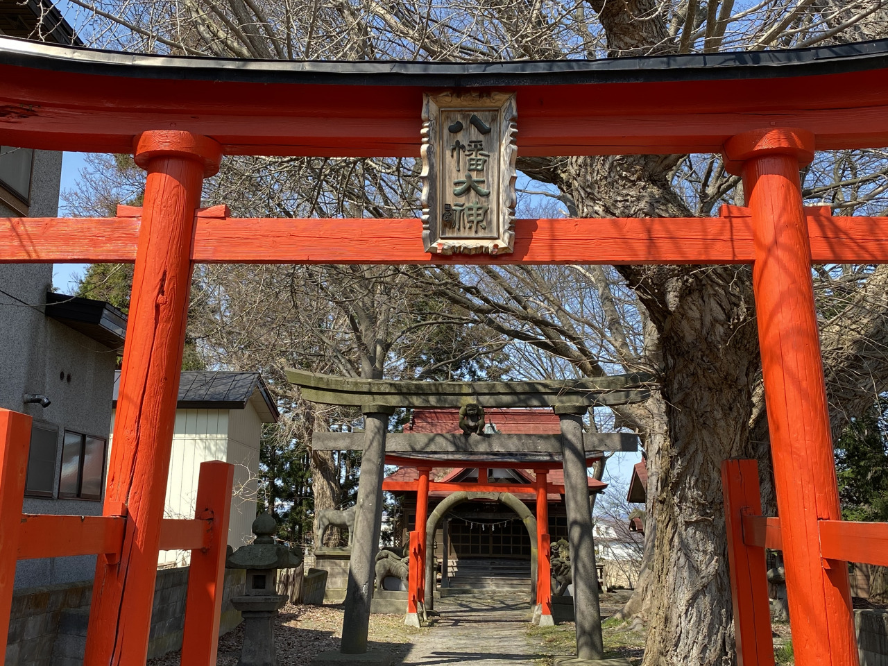 平川市柏木町にある柏木八幡宮は、津軽地方に伝わる「鳥居の鬼コ」が見られる神社です。