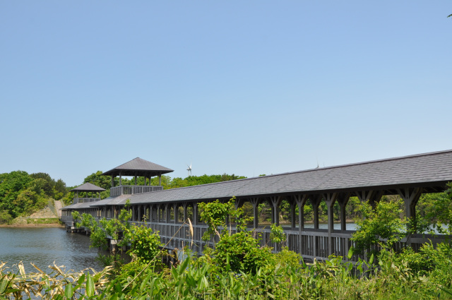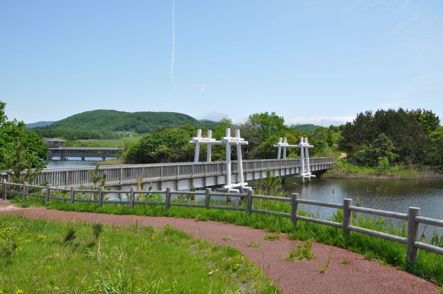 大沼を一周する遊歩道、日本一長い屋根付きの橋があり、ゆったりと憩いの時間を過ごすことができます。