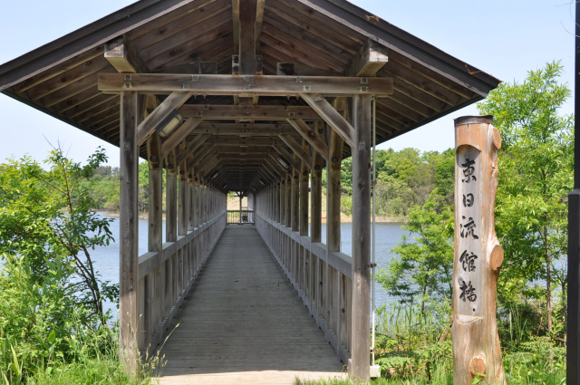 日本一長い屋根付の橋「東日流館橋」