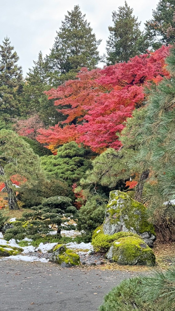 園內並築有象徵「真」與「行」的築山,並點綴松樹、楓樹、杜鵑等植物,增添庭園情趣。